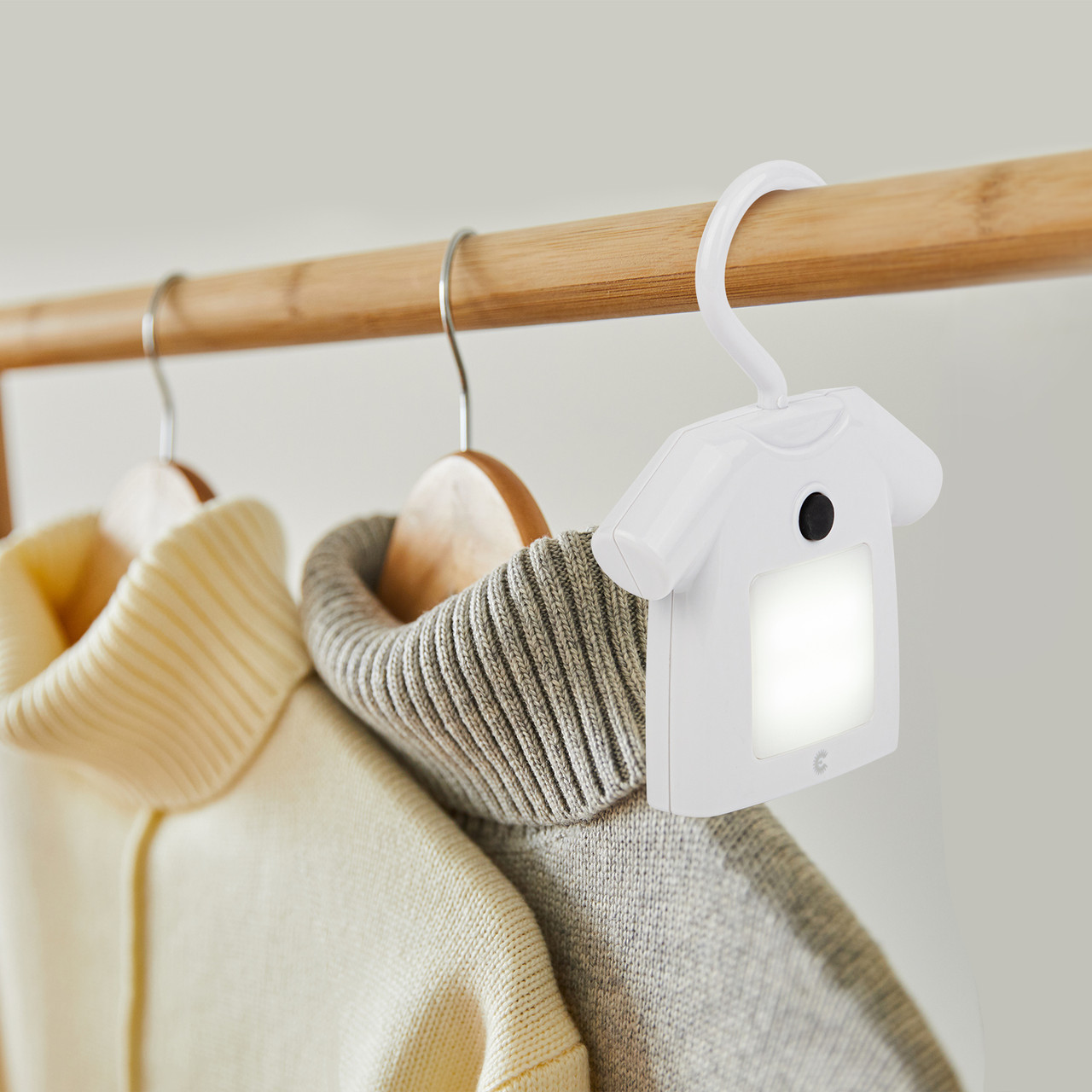 Удобный, красивый и функциональный светильник-ночник NLED-485-1W-SW-W со светодиодами (LED), с выключателем. Дизайн корпуса светодиодного ночника напоминает рубашку на вешалке. Светильник автономный, работает от элементов питания 3 х ААА (не входят в комплект поставки), у него есть крючок для подвеса с поворотом в любом направлении. Есть магнитное крепление - на металлических поверхностях держится без крюка. Также светильник-ночник можно просто поставить - будет устойчиво стоять. Используйте его где удобно - можно повесить в шкаф для подсветки, в любое другое подходящее место, просто поставить и даже прикрепить на холодильник. Поменять батарейки очень легко. Поставляется в блистерной упаковке с евроотверстием.